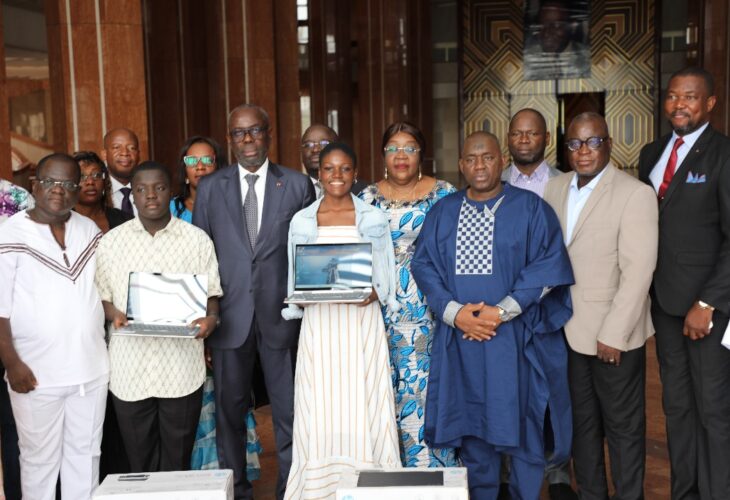 Ce vendredi 11 juillet 2025, à la salle de réunion de la Fondation Félix Houphouet Boigny, le Ministre, Gouverneur, Docteur Augustin THIAM a reçu les deux meilleurs élèves ayant obtenu la plus forte note au Baccalauréat sur le plan national. Il sagit de Monsieur AKA Prince Ezéchiel et de Mademoiselle KANGA Akissi Yahleel Ketia. Cette cérémonie a convié la présence des membres du Bureau du Conseil, des Directeurs et des Sous-Directeurs du District, le DRENA et ses Secrétaires Généraux, les enseignants, les parents d’élèves et les guides religieux. Pour débuter ladite cérémonie, l’Imam Seydou SYLLA a fait une prière du côté des Musulmans et le représentant de l’Evèque, Monsieur AMOZO FI Alex a fait de même du côté des chrétiens. Suite à cette prière, Monsieur le Ministre a félicité et encouragé les deux élèves pour leur résultat hors du commun. Il a offert à chacun un ordinateur portable et une imprimante appuyés d’une enveloppe d’un million cinq cent mille (1500.000F). Pour finir, le Ministre, Gouverneur, a reçu des remerciements venant des deux meilleurs élèves du Baccalauréat 2025 et des bénédictions de la part de leurs parents.